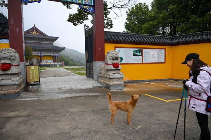 半山腰还有一座大型寺庙,是新修的,和山顶的寺庙是一个名字。小黄在闻啥呢?难道知道我们中午吃了啥?