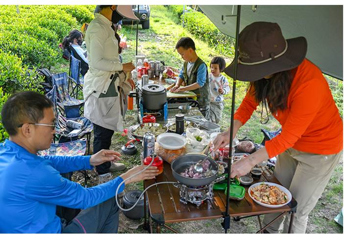 茶园游览门票、采茶炒茶体验、茶园露营1晚(2人一套露营装备)、第1天的营地晚餐、第2天营地早餐、第2天农庄午餐、2天活动专业领队带队、后勤车辆运输活动物质、2天户外旅行意外险。