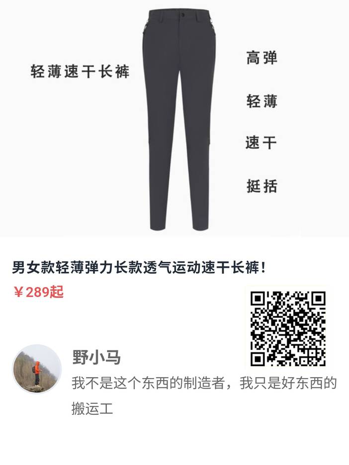 夏季无论是徒步,还是溯溪,一条能速干的长裤,可以解决很多问题,可当几条裤子用!夏季闷热不适合穿防雨的冲锋裤(低海拔环境下),那么一条速干裤能在雨水打湿之后,只要雨停,基本上在2-3小时内能速干,不会让腿上的热量流失。