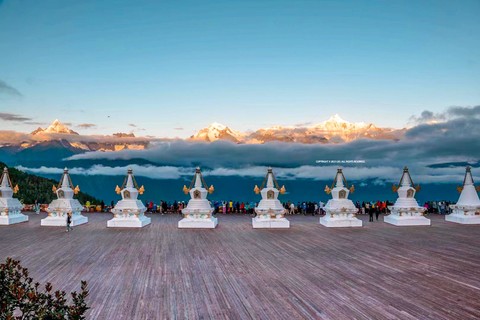 【飞来寺】是欣赏梅里雪山十三座雪峰最好的观景台之一,天气晴好的时候,还可以在这里欣赏到绚烂的晚霞,在这里拍照非常出片。