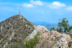 鹤岭海拔相对高度约400米左右,全程约10余公里,都是在山脊上行走。线路走的人不多,非常原生态,而且山体的石头,经过上百年的风化,具有特殊的地容地貌,远远眺望峻险挺拔的石岗,远处绵延的丘陵,错落有致的梯田,村落渺渺的人家,与蓝天白云、青山绿水完美地融为一体,充满着田园牧歌。