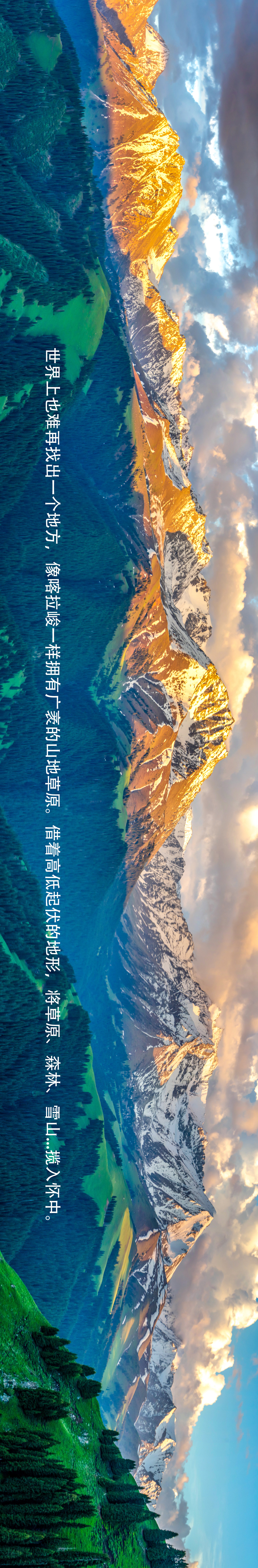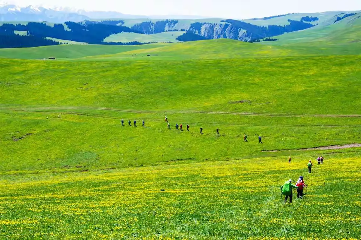 这次,我们要去徒步的地方-喀拉峻,有草原、森林、雪山、河流……,是被联合国公认为世界地理遗产的立体草原;是可以闻着青草香看着雪山的地方,也是可以白天策马奔腾,夜晚数星星的地方。