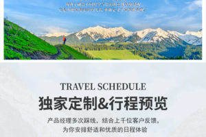 酒店早餐后,中午到达特克斯县(八卦城),了解八卦城历史文化,品八卦城特色美食;从喀拉峻景区乘车前往洗羊池徒步起点开始徒步,放眼望去,早已开始心魂萦绕,鲜花、草原、蓝天、白云、毡房、牧民、雪山、牛羊……