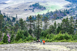 格拉丹春季繁花似锦、夏季绿草如茵、秋季草坪丰茂、冬季银装素裹,开阔的高山草甸风光、原始森林和杜鹃花海交相呼应,真乃纯净户外天堂。