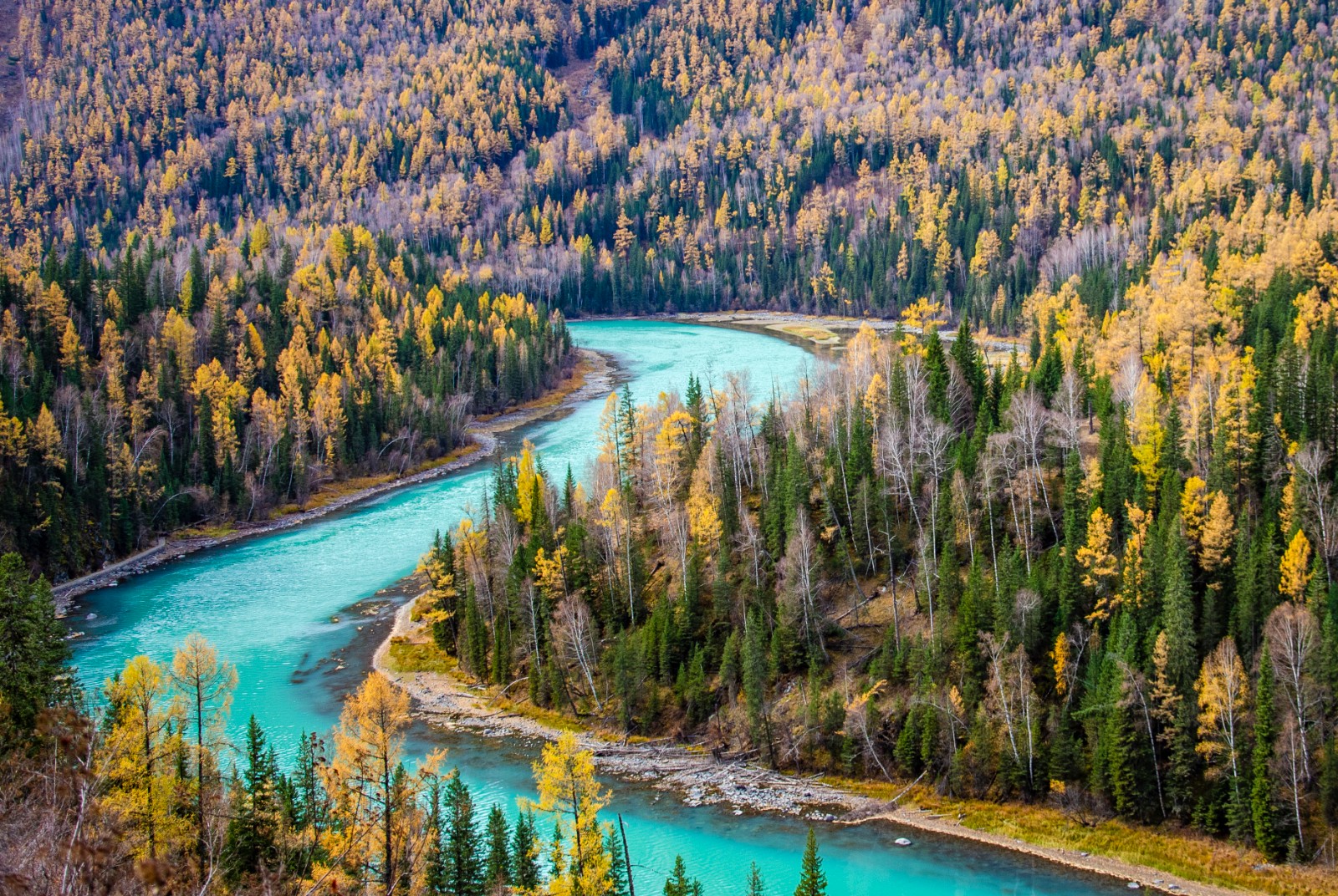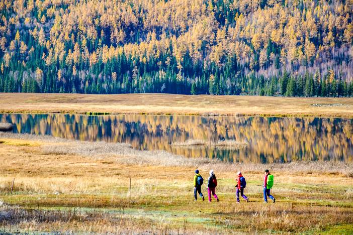 一定要在喀纳斯来一场徒步,从草原到山谷,从村庄到河流湖泊,行走在五彩斑斓的西伯利亚落叶松林中,每一秒都是色彩极致的视觉盛宴。
