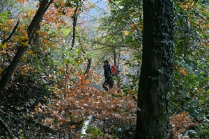 09:30 到达徒步起点大坪村,简单热身后出发开始徒步翻山,走山林小道。