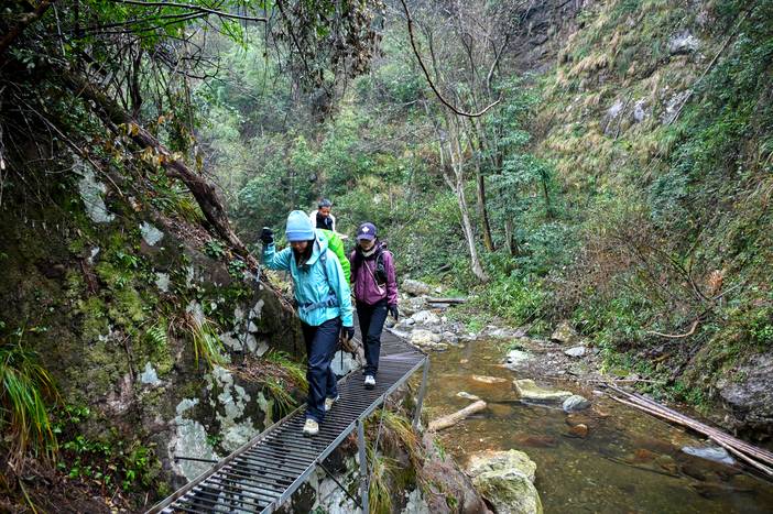 3、滑坠滑倒,山里野路徒步,有滑坠的危险,在悬崖栈道上不要做过度危险的举动;登山过程中循序渐进,以防滑倒扭伤。