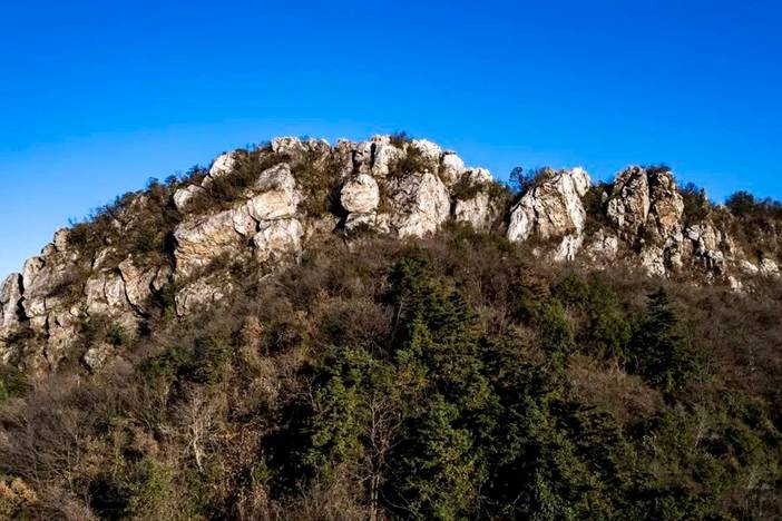 顶峰一面200平米绝壁,壁上布满六棱椎型的石英晶体,青苔漫生,阳光下远观如翠绿珍珠宝石,灿然生辉,曰“翠璧”。这一地球造山运动的地质奇观,不但使“玲珑翠璧连云峻”,山以璧傲,璧秀于山。