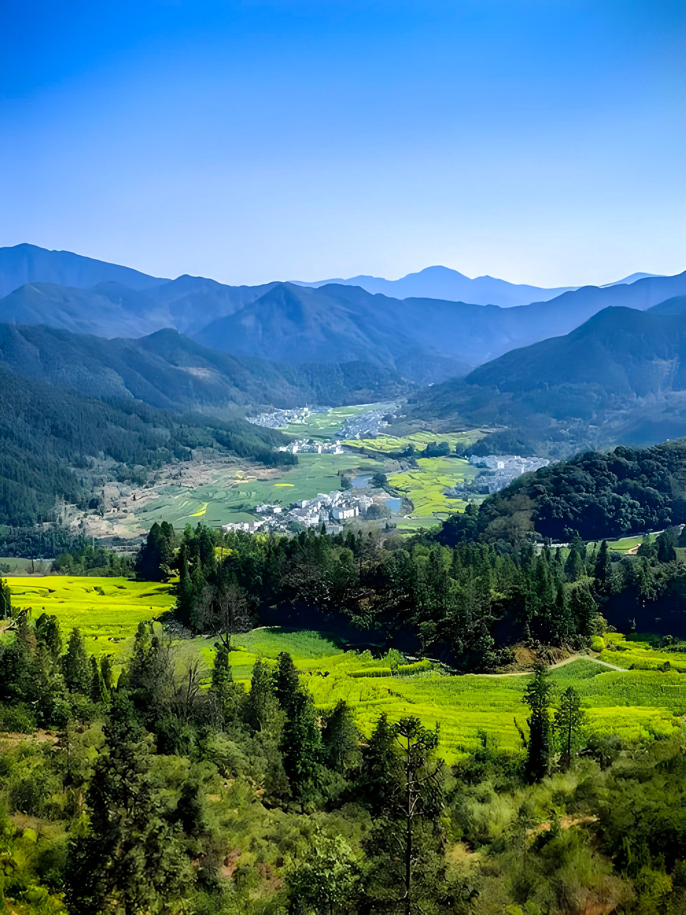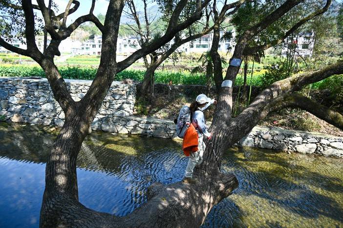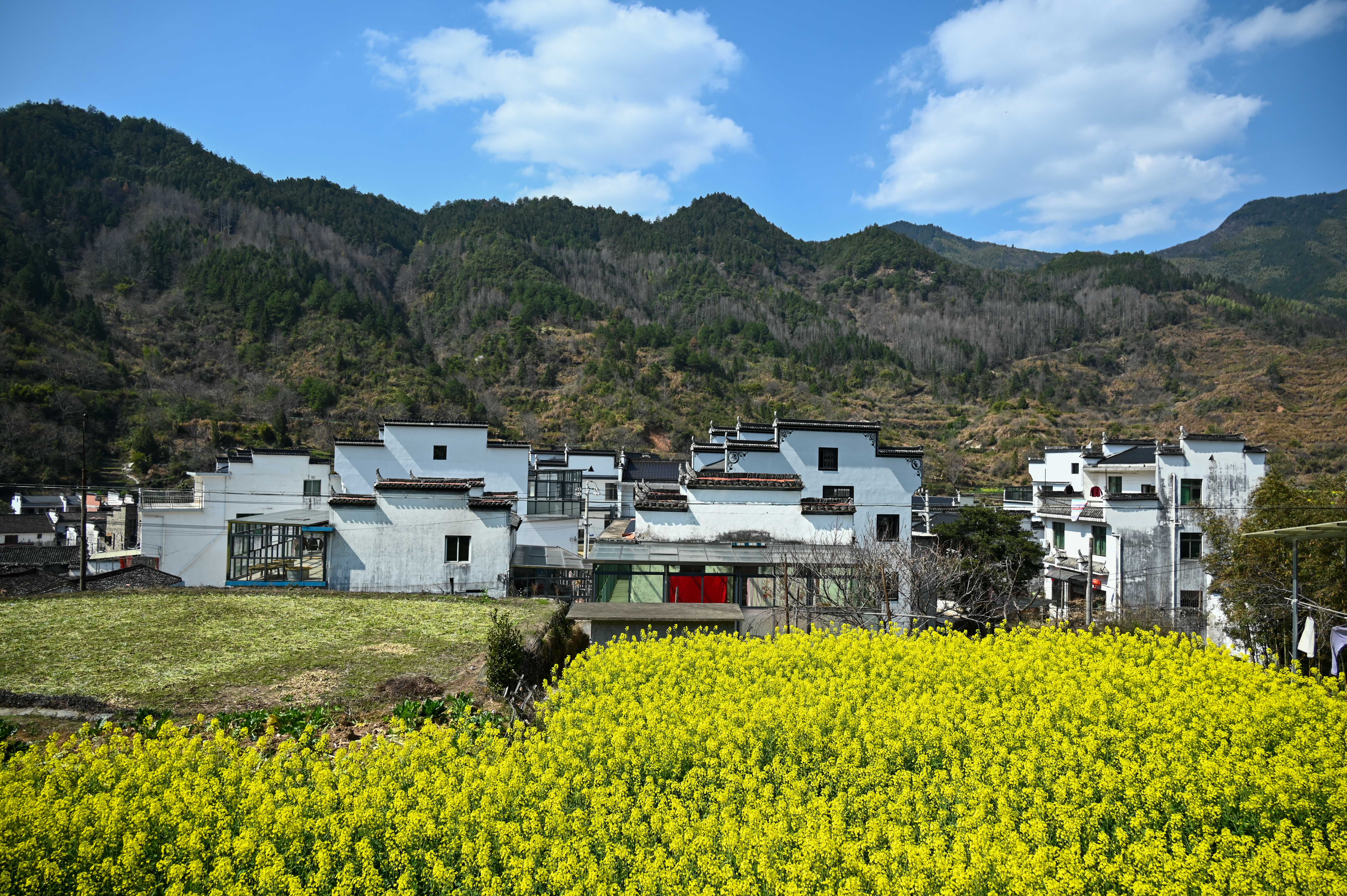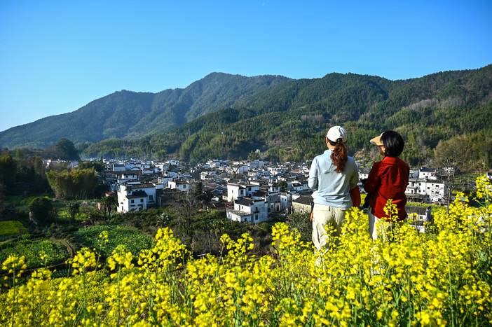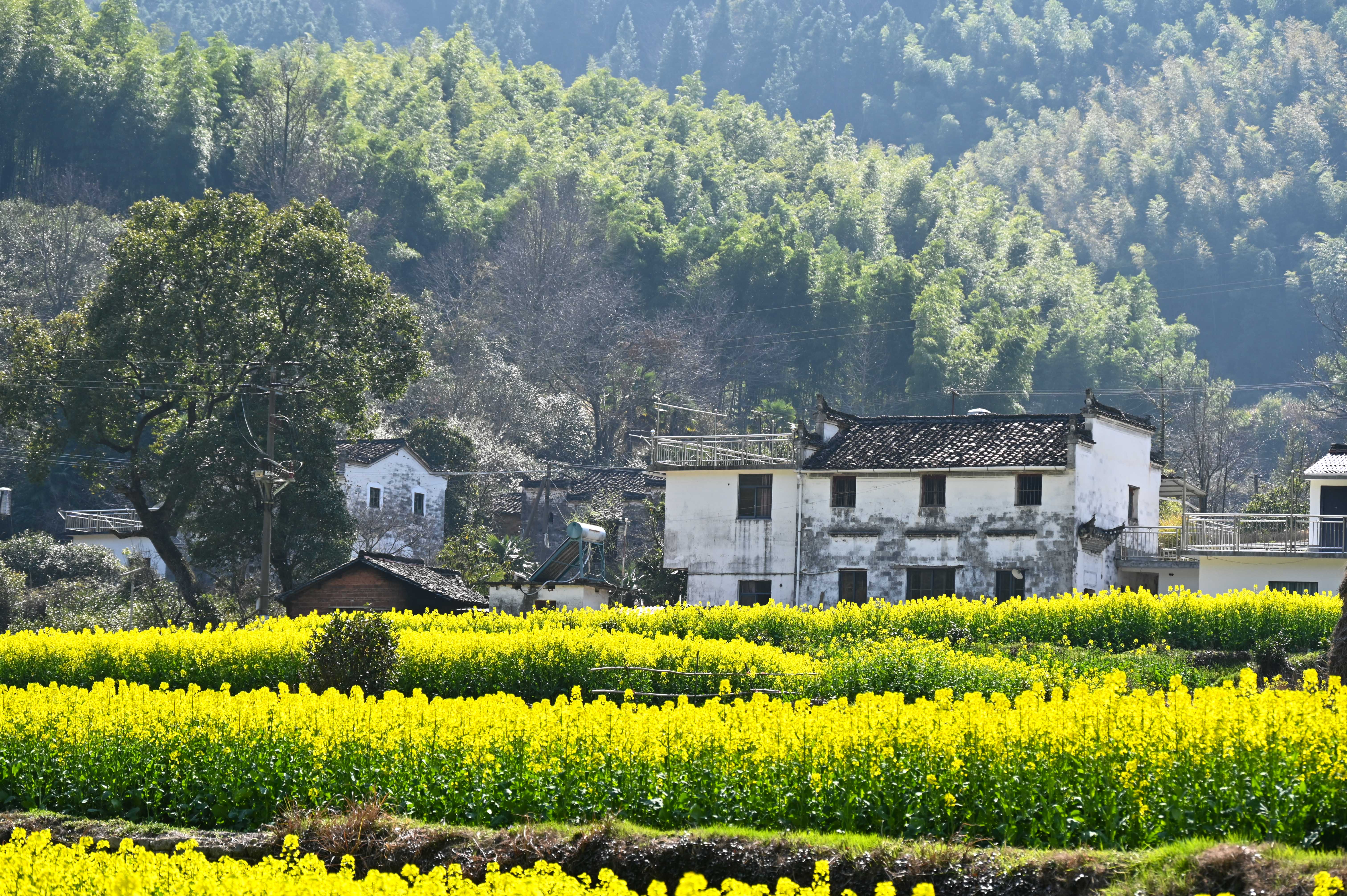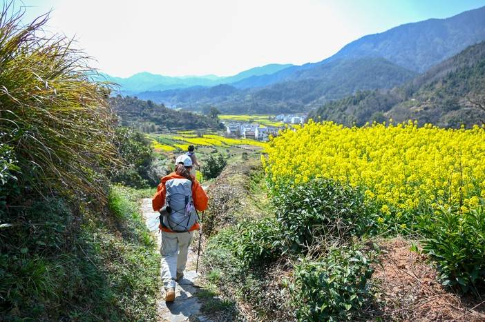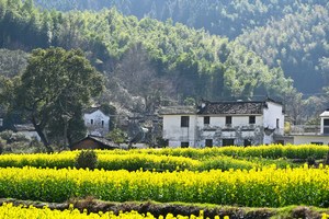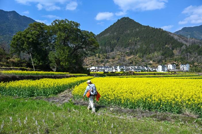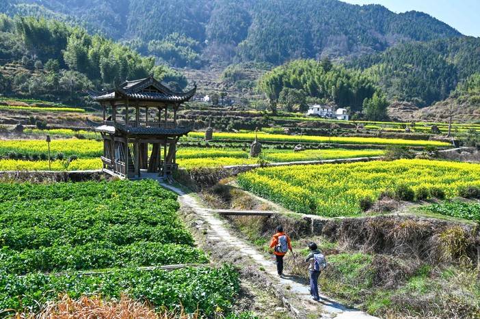 三月中下旬的徽饶古道油菜花盛开,行走其中仿佛走进油画的世界,在阳春的微风里访古探幽令人沉醉。