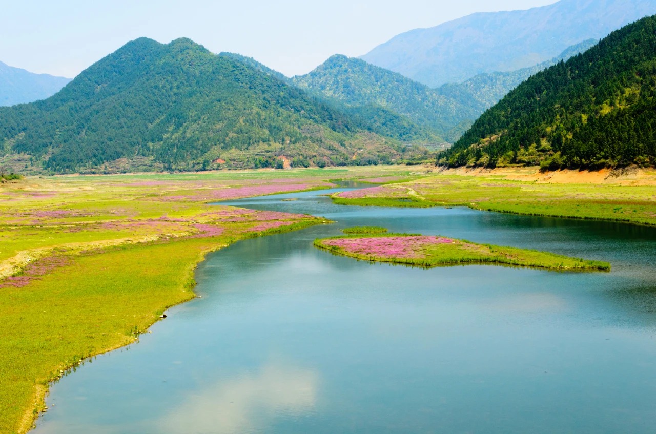 段莘水库,也被叫做高山平湖。每年四月湖畔那片“紫云英”花海正在悄悄绽放,遍地的青草丛、小灌木、牛羊成群,无限美好。躺卧在紫云英柔软的怀抱里,阳光,花香,还有蝴蝶,随即飘进了绚烂的婺源梦中。