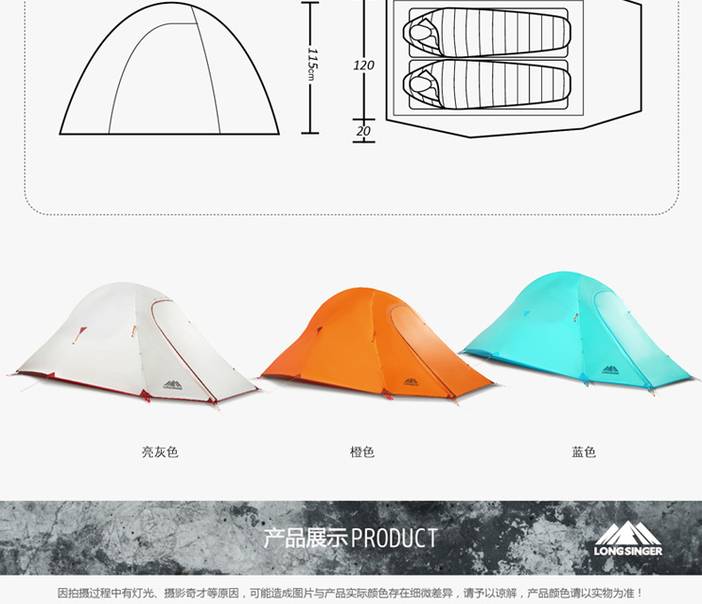 longsinger双人双层双面涂硅超轻1.65kg徒步野营四季帐篷