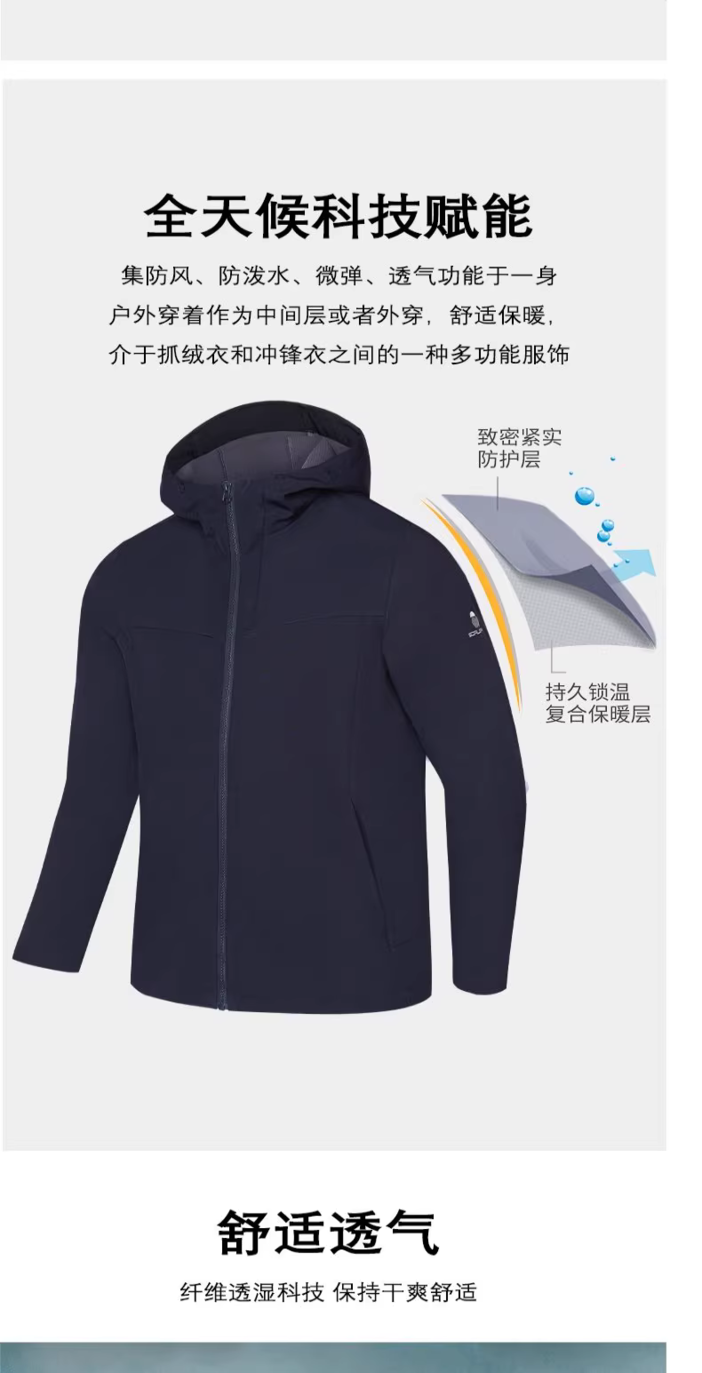 它比冲锋衣会更透气,同时兼顾抓绒衣的保暖性能。