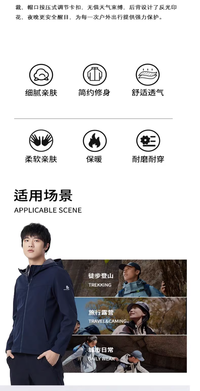 所以冬天穿着它徒步登山就不会有闷热感,同时软壳亦可以作为平时休闲上下班穿着。