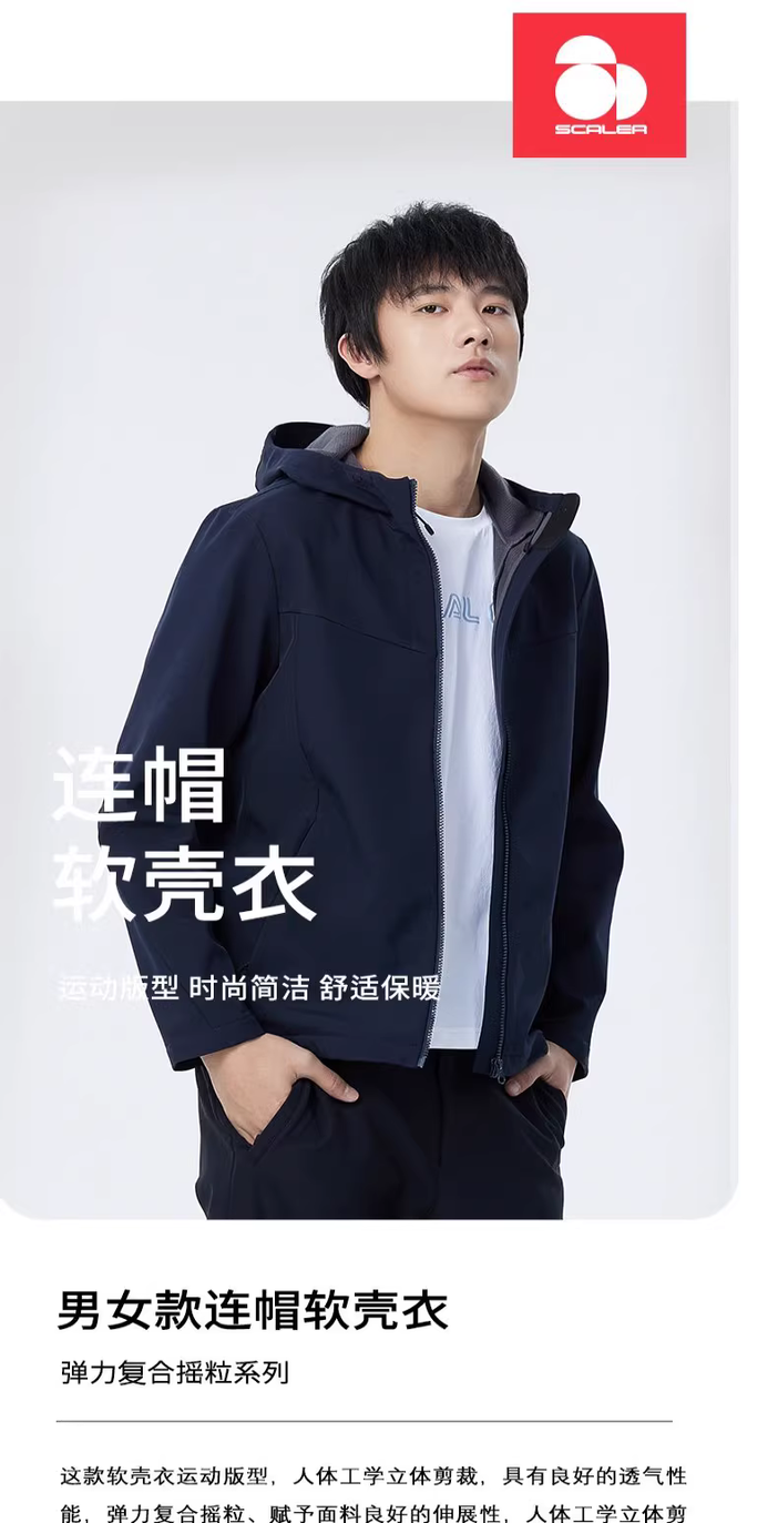 SCALER户外弹力软壳冲锋衣连帽夹克静音外套F2903298/F2913298