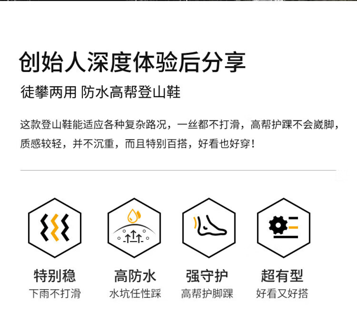 专业户外高帮徒步鞋event防水透气+黄金V底防滑耐磨