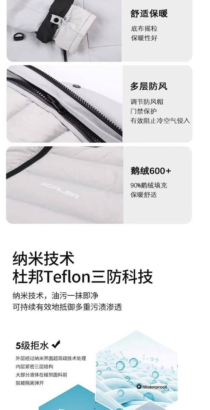 填充物:90% 鸭绒 蓬松度600FILL。 拉链:YKK 。