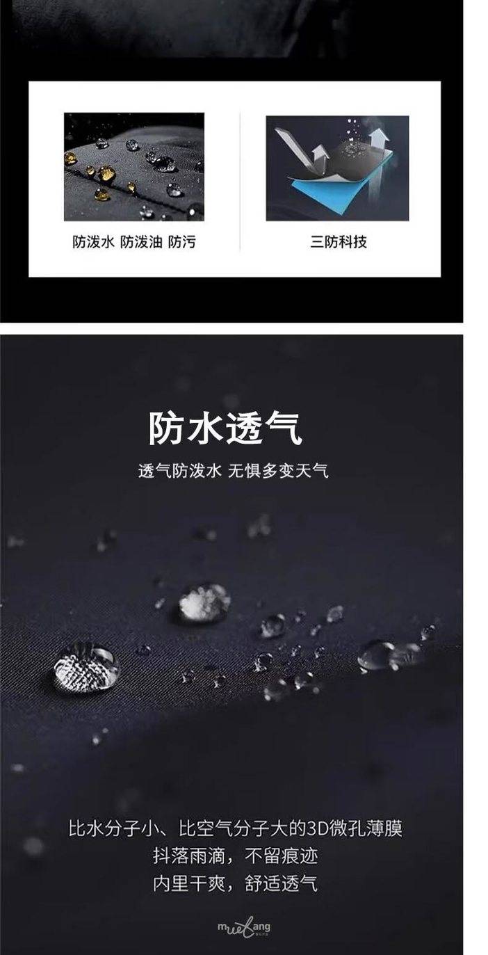 面料防水:5000mm/h20;透湿: 3000g/㎡/24h;