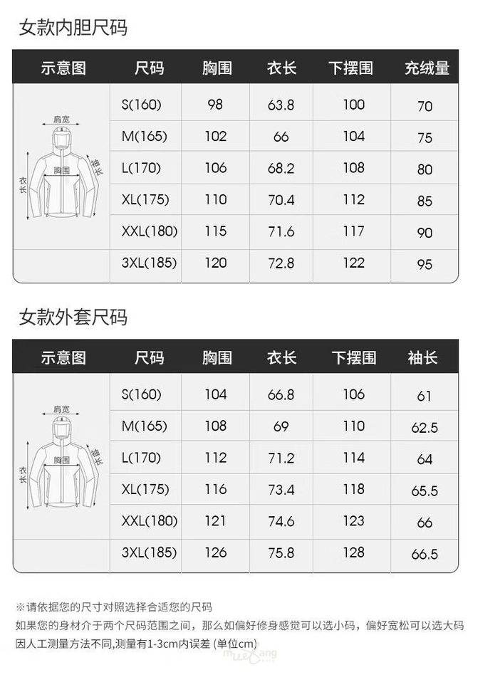 羽绒内胆冲锋衣参数