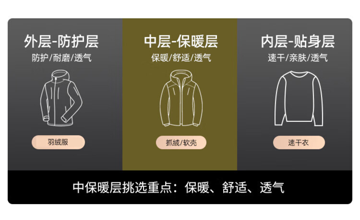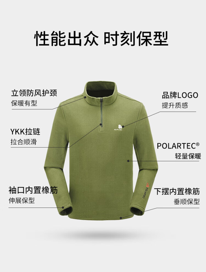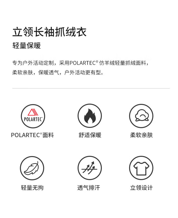 Polartec抓绒衣轻量保暖,和轻薄羽绒服一样经常作为内胆,特点是透气保暖不易受潮!