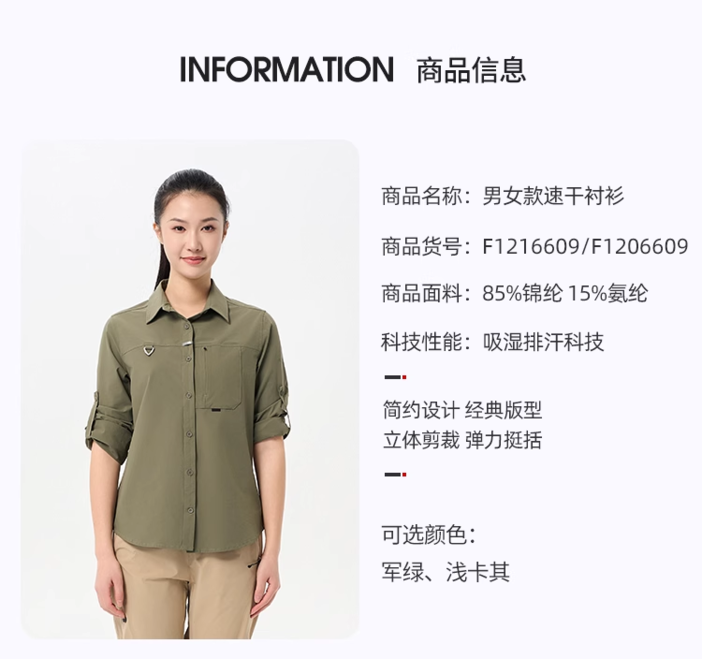 户外徒步、露营速干衬衫休透气长袖
